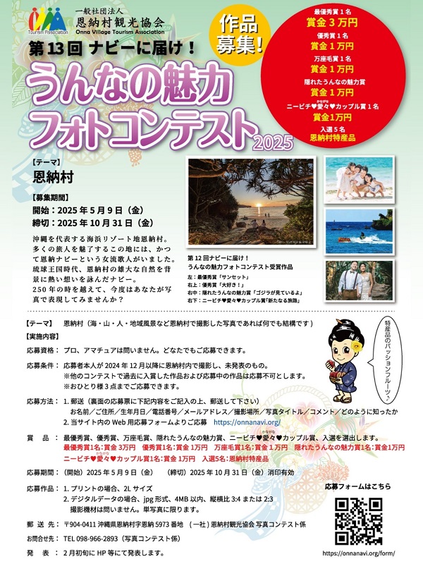 応募フォームやその他、詳しくは恩納村観光協会HPのフォトコンテストページへ▼